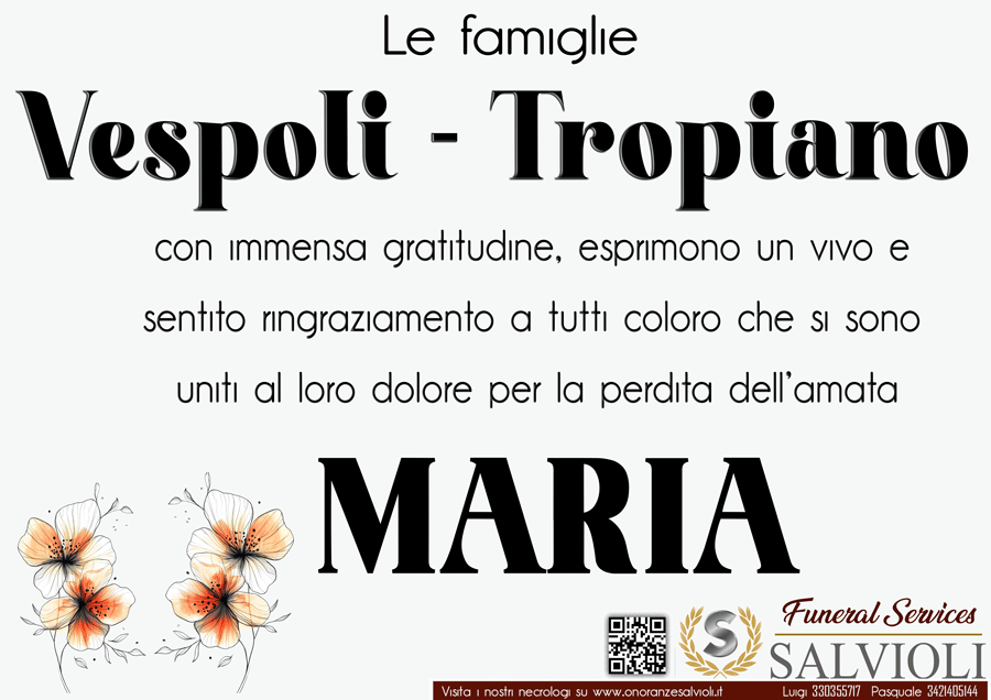 I familiari ringraziano anticipatamente tutti coloro che parteciperanno alla cerimonia funebre e tutti coloro che scriveranno con affetto un Pensiero di Ricordo.