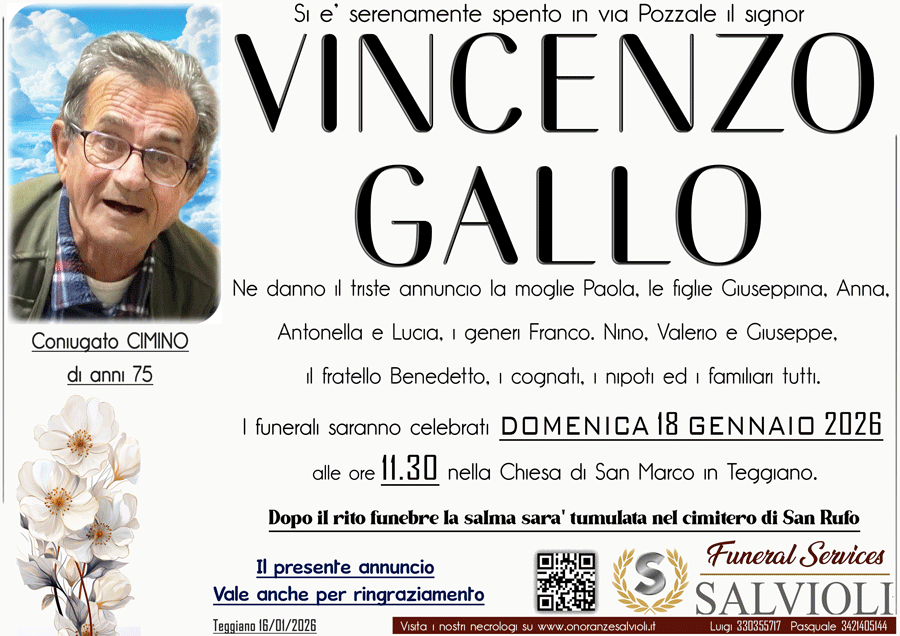 I familiari ringraziano anticipatamente tutti coloro che parteciperanno alla cerimonia funebre e tutti coloro che scriveranno con affetto un Pensiero di Ricordo.